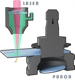 a laser cutter or a water jet. Punch presses can operate at hundreds of strokes per minute making this a